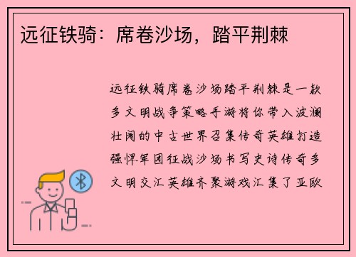 《远征铁骑:席卷沙场,踏平荆棘》是一款多文明战争策略手游,将你带入波澜壮阔的中古世界。召集传奇英雄,打造强悍军团,征战沙场,书写史诗传奇。